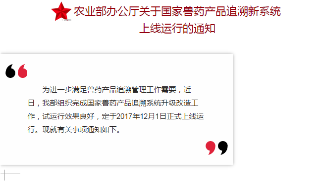 农业部发布:12月1日国家兽药产品追溯新系统上线运行